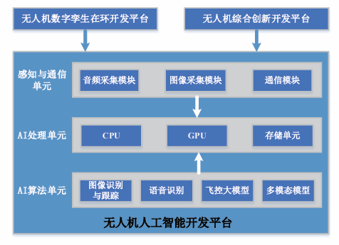 無人機人工智能開發(fā)平臺由感知與通信單元、AI處理單元、AI算法單元三部分構成。